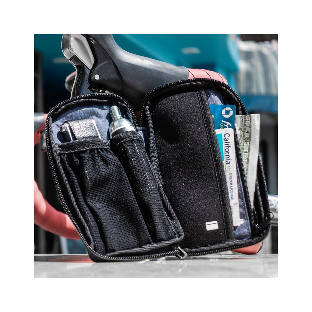 Vreckový organizér je kompaktná cyklistická peňaženka navrhnutá na usporiadanie voľného cyklistického príslušenstva a optimalizovaná tak, aby sa úhľadne zmestila do vrecka dresu. Je vyrobená z odolnej nylonovej tkaniny a zaistená vysoko vodeodolným zipsom. Vnútorné vrecká sú navrhnuté a označené na mieru, aby ste mohli organizovať rôzne vybavenie a osobné potreby, ako sú kreditné karty a peniaze. K dispozícii len ako organizér alebo ako dve naložené možnosti.
