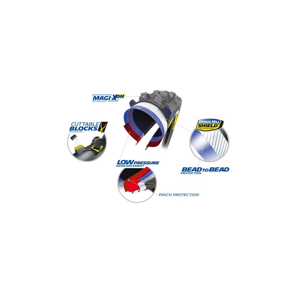 Plášť Michelin Dh Mud ti poskytne istotu a kontrolu aj v tých najťažších podmienkach. Vďaka špeciálnemu dezénu a zmesi Magi-X sa môžeš spoľahnúť na maximálnu priľnavosť a stabilitu, čo ti umožní jazdiť rýchlejšie a s väčšou istotou.
