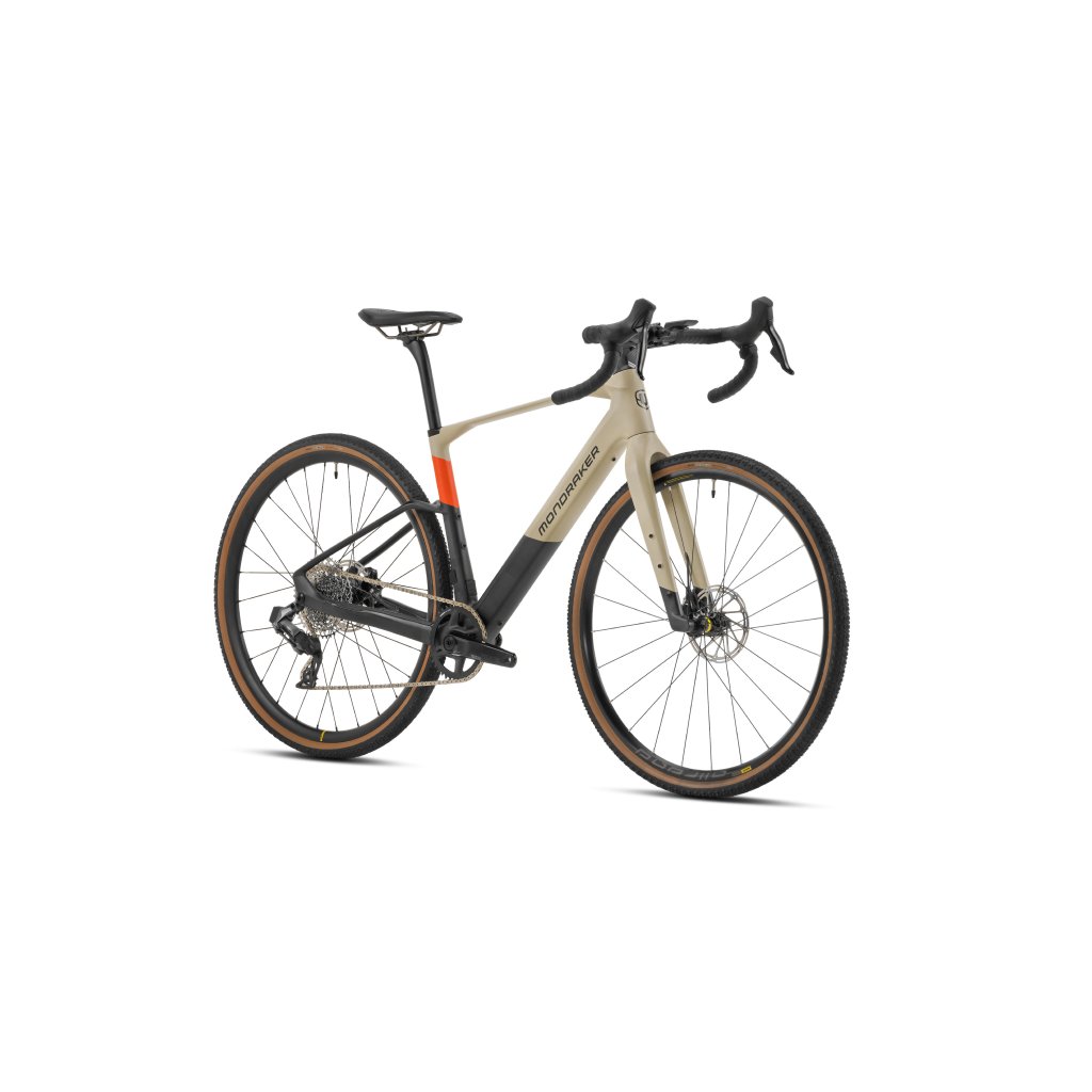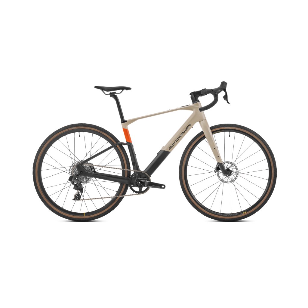 Mondraker Dusty R, elektrobicykel - Desert grey/orange/carbon 2023