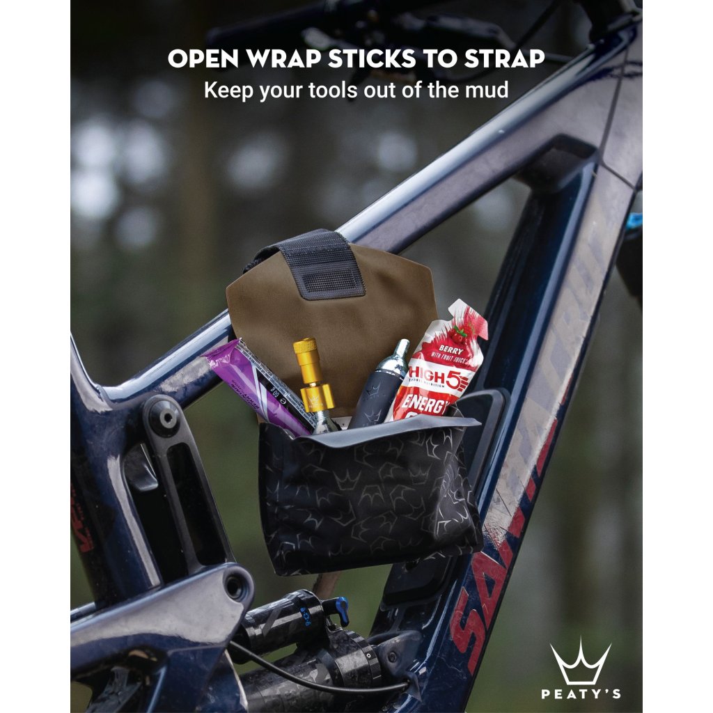 Farba Slate Grey je mimoriadne univerzálna. Či už ju skombinujete s pestrofarebným rámom alebo minimalistickým dizajnom, vždy vyzerá skvele. Wrap pojme štandardný multikľúč, montpáky, bombičky CO2 a náhradnú dušu (dokonca aj moderné široké MTB rozmery).