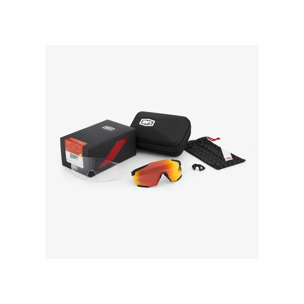 100% Racetrap, cyklistické okuliare - Soft Tact Black - HiPER Red Multilayer Mirror Lens