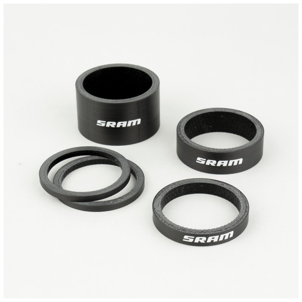 | Dlhý popis: | SRAM Headset Spacer Set, UD Carbon, Gloss White Logo (2.5mm x 2, 5mm x 1, 10mm x 1, 20mm x 1) |