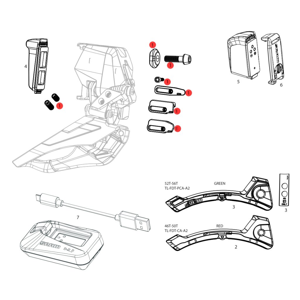 Sram Red AXS E1, súprava náhradných dielov prešmykača